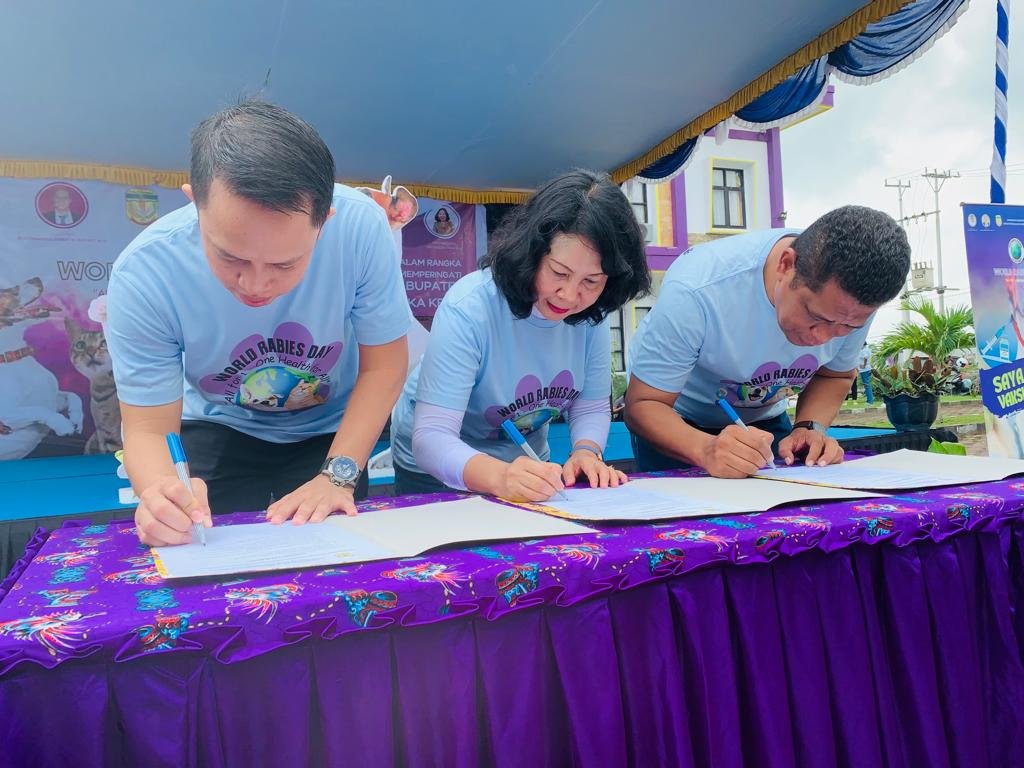 Guna mencegah masuknya penyakit rabies masuk ke Timika, Dinas Peternakan dan Kesehatan Hewan Kabupaten Mimika, Stasiun Karantina Pertanian Kelas 1 Timika beserta Dinas Kesehatan Kabupaten Mimika menandatangani kesepakatan bersama yang dilakukan di Kantor Dinas Peternakan dan Kesehatan Mimika, Sabtu (7/10/2023).