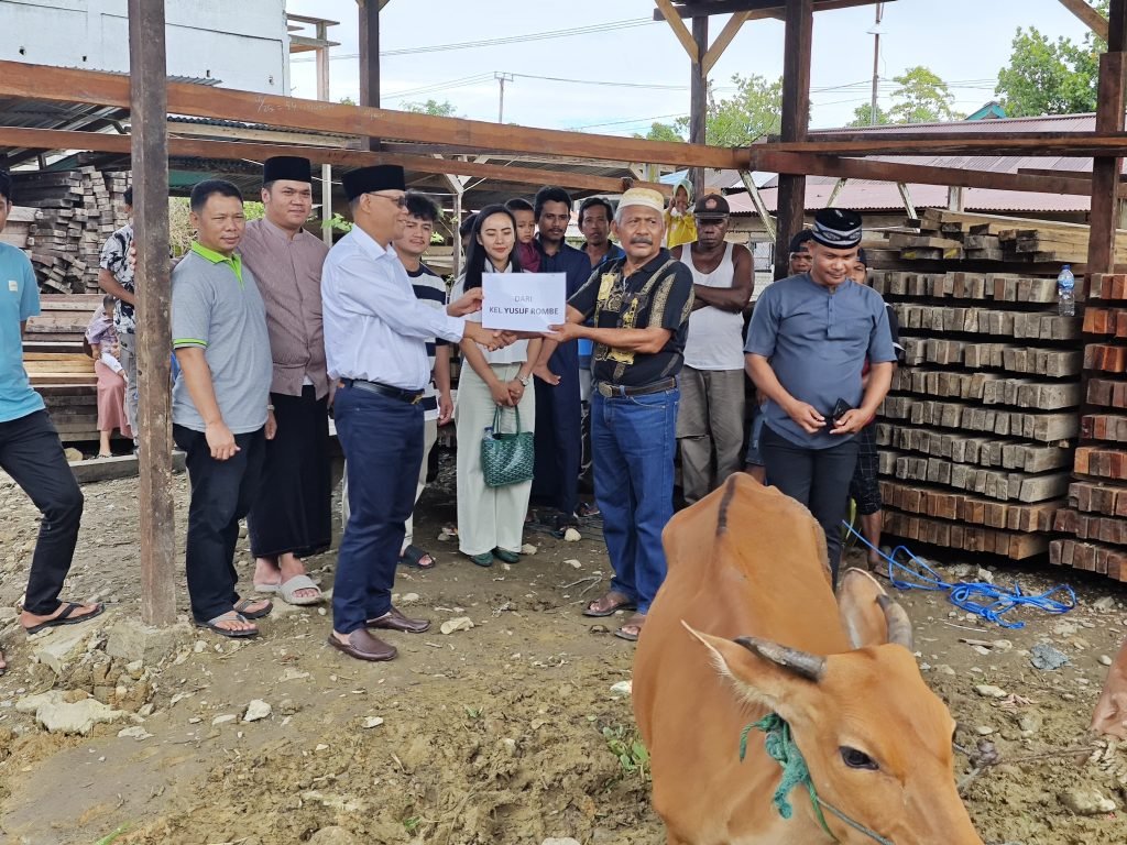 Penyerahan sapi kurban ini dilakukan langsung oleh Yusuf Rombe ditiga lokasi masjid yang berbeda.