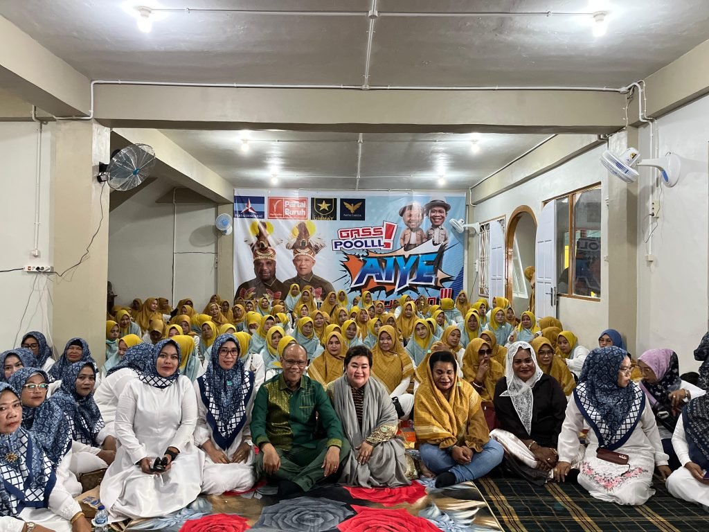 Bertempat di gedung sekretariat tim pemenangan AIYE, di Jalan Yos Sudarso, Relawan Wanita Muslim Timika menyatakan sikap dan dukungan mereka untuk AIYE.