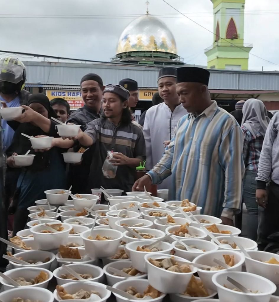 Acara tersebut diwakili oleh Ny. Erda Rombe yang didampingi oleh Tim Queen AIYE. Mereka membagikan bakso dan es cincau gratis kepada umat Muslim yang baru saja selesai melaksanakan ibadah shalat Jumat di Masjid Agung Babussalam Timika. Ratusan warga tampak antusias dan berbondong-bondong menuju lokasi untuk menikmati sajian gratis yang disiapkan oleh tim AIYE.