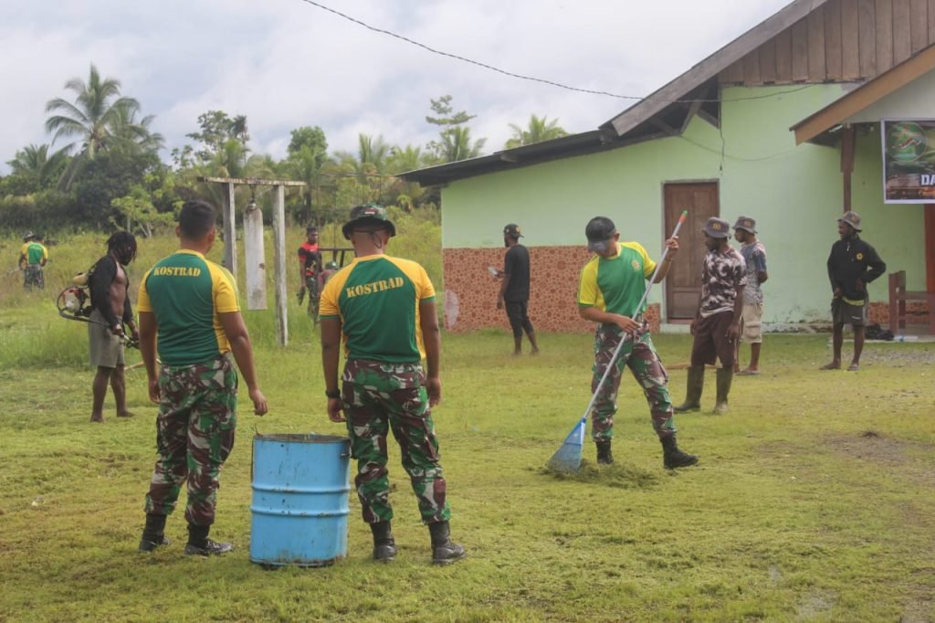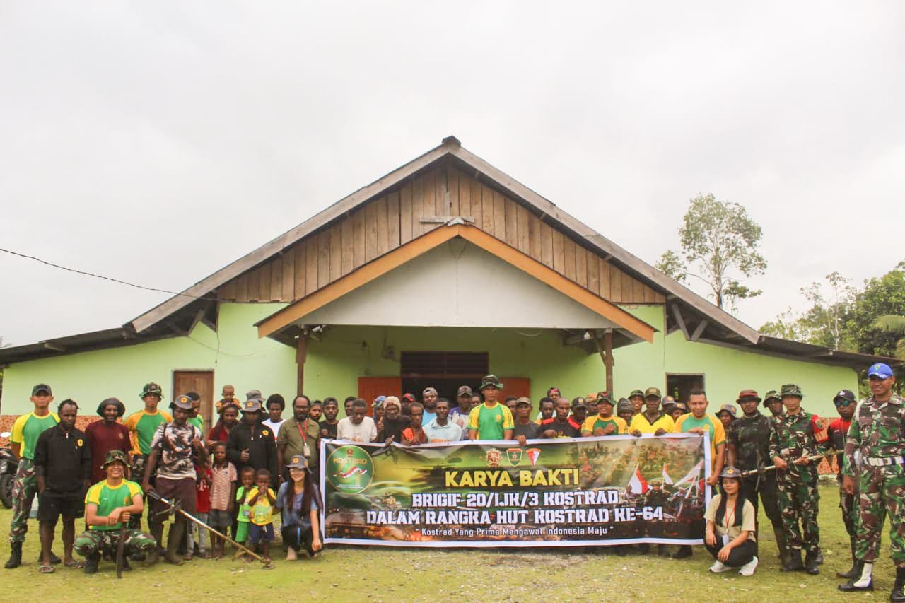 Sambut HUT Kostrad ke-64, Prajurit Brigif 20/IJK/3 Kostrad Gelar Karya Bakti di Kampung Mware