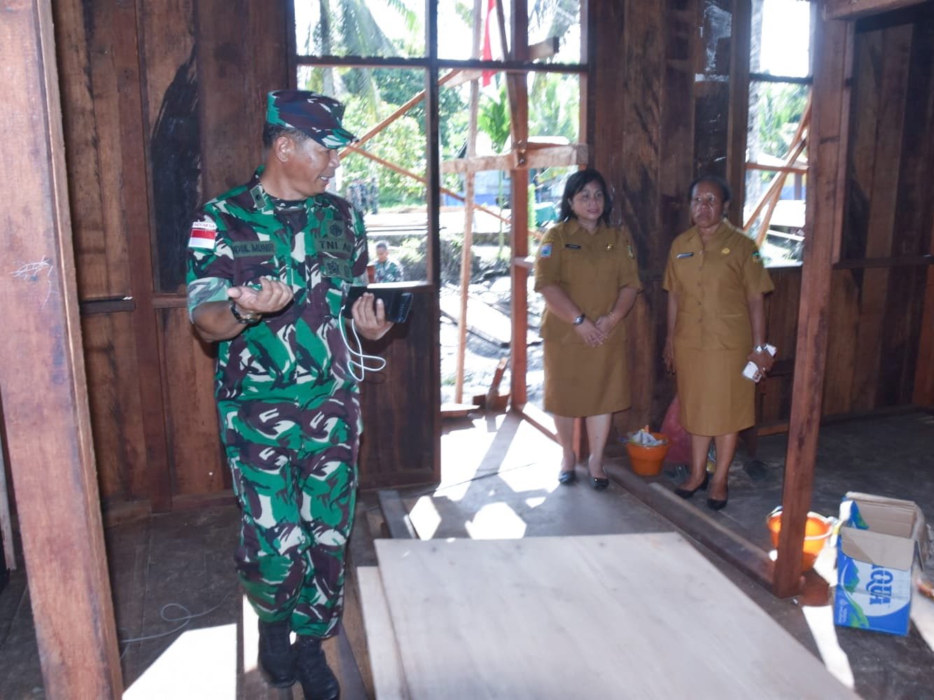 Kepala Bidang Pemberdayaan Lembaga Masyarakat, Ibu Eklefina M. Karma. S.pd dari Dinas Pemberdayaan Masyarakat dan Kampung Kabupaten Mimika bersama Kasdim 1710/Mimika, Mayor Inf Abdul Munir melakukan peninjauan langsung ke lokasi pelaksanaan TMMD Reg ke-124 di Kp. Pigapu, Distrik Iwaka, Kabupaten Mimika, Senin (19/5/2025).