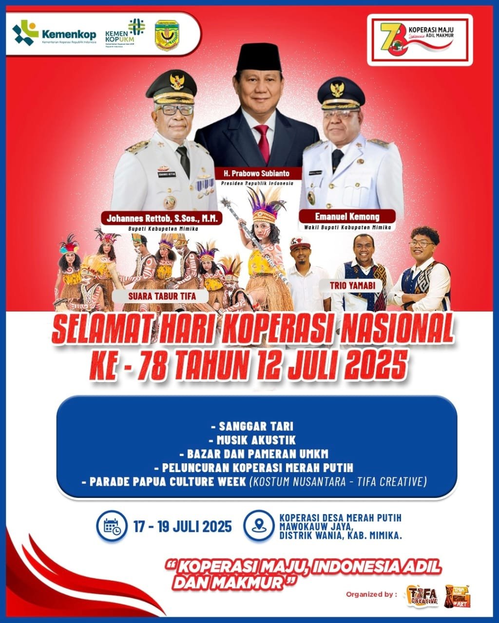 “Nanti kegiatan dipusatkan di Koperasi Desa Merah Putih, Kampung Mawokauw Jaya, Distrik Wania, tanggal 17-19 Juli 2025,” terangnya.