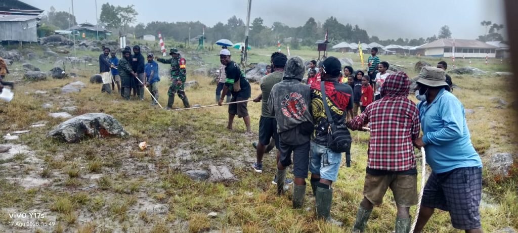 Perayaan momen HUT RI ke-80 Distrik Jila dirangkaikan dengan menggelar perlombaan volly dan tarik tambang antar pegawai distrik dan masyarakat.(**)