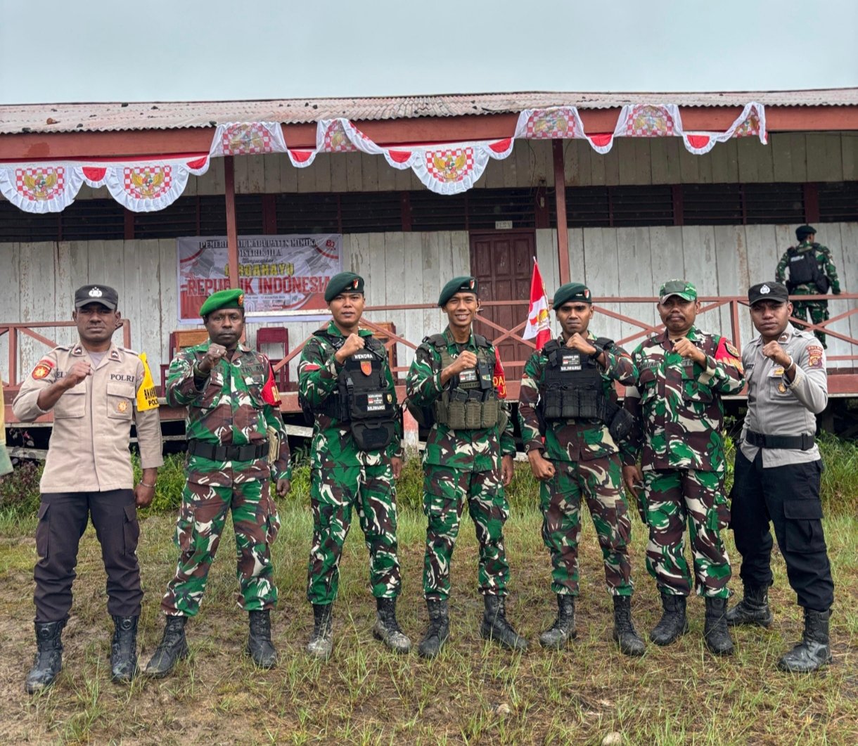 Upacara peringatan hari kemerdekaan Republik Indonesia ke-80 ini diikuti pegawai distrik, masyarakat, tenaga medis, guru, dan anggota TNI/Polri, serta anggota Satgas Yonif 301/PKS yang juga sekaligus menjadi petugas pengibar bendera.