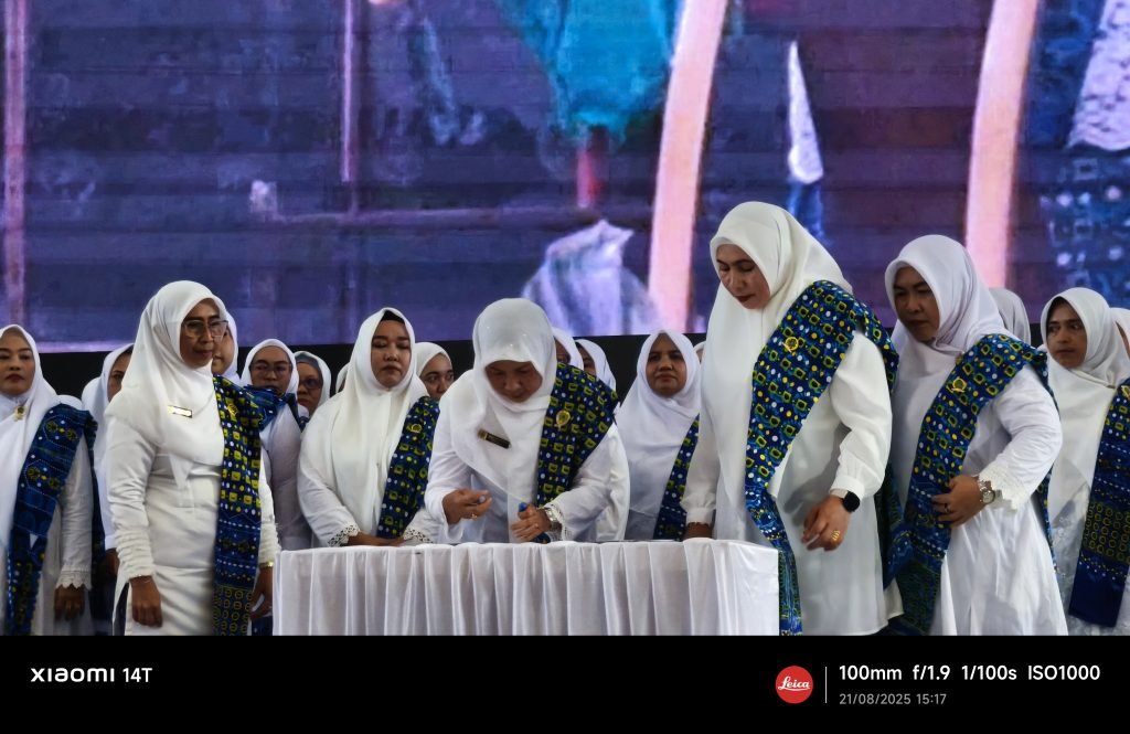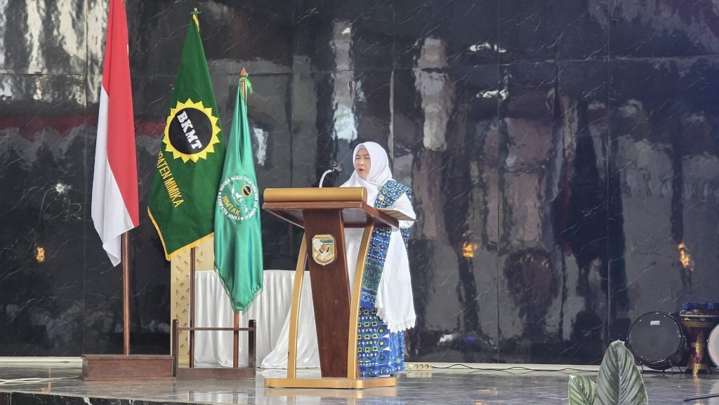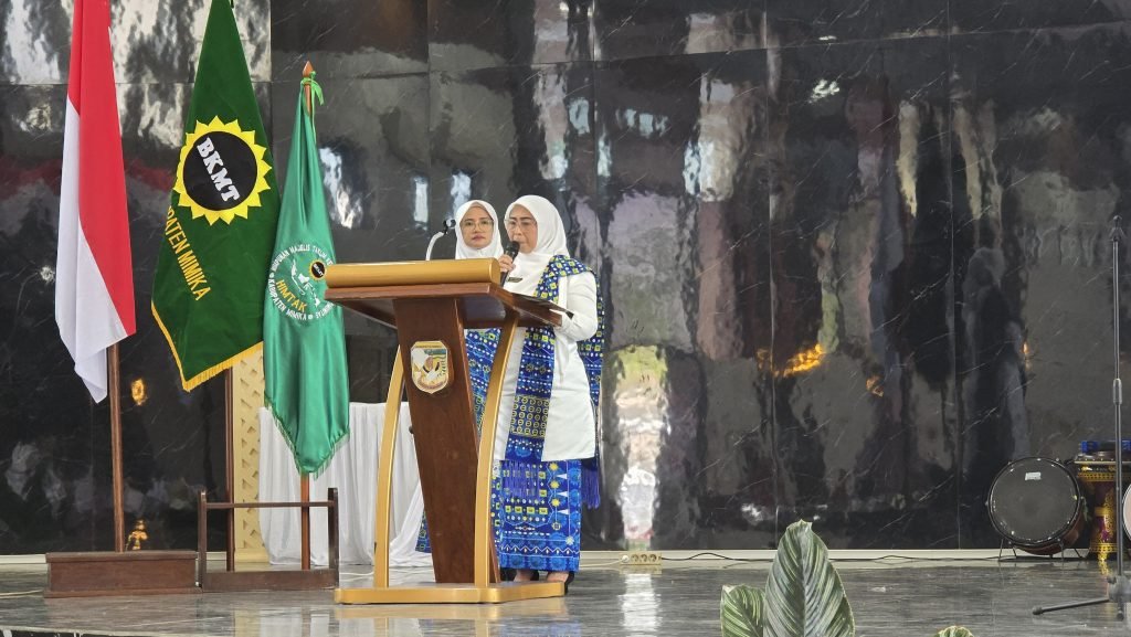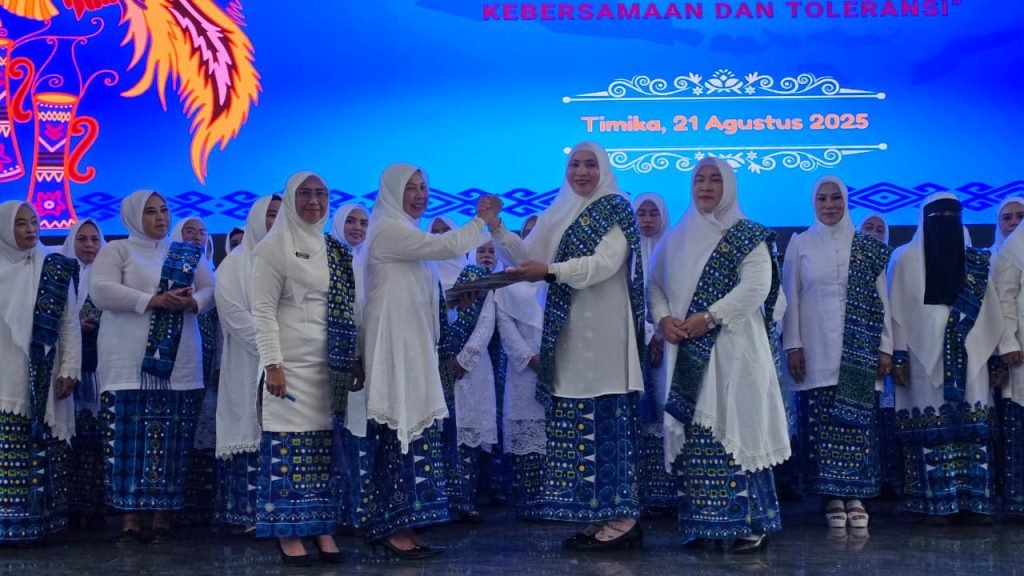 Ketua Badan Kontak Majelis Taklim (BKMT) Kabupaten Mimika, drh. Sabelina Fitriani melantik pengurus Himpunan Majelis Taklim Kerukunan dan Komunitas (HIMTAK) Kabupaten Mimika periode 2025-2030, digedung Eme Neme Yauware, Kamis (21/8/2025).
