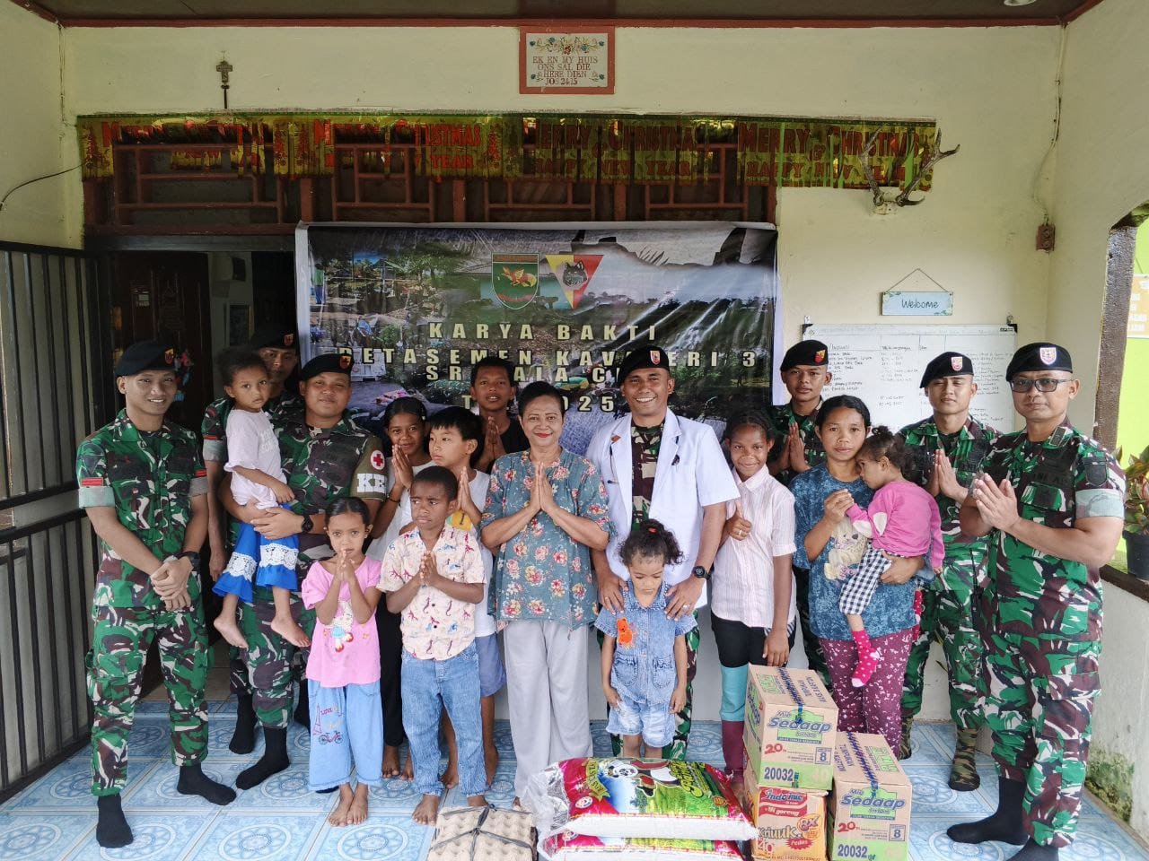Suasana hangat dan penuh makna menyelimuti Panti Asuhan Cinta Bela yang berlokasikan di SP 3 ketika personil Detasemen Kavaleri 3/SC menggelar kegiatan pelayanan kesehatan bagi anak-anak yatim piatu serta membantu membersihkan lingkungan di sekitar Panti Asuhan Cinta Bela, Senin (22/09/2025).