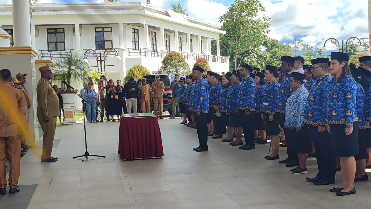Sebanyak 278 Pegawai Negeri Sipil (PNS) di lingkungan Pemerintah Kabupaten (Pemkab) Mimika mengikuti sumpah janji jabatan sebagai PNS, Senin (29/9/2025)