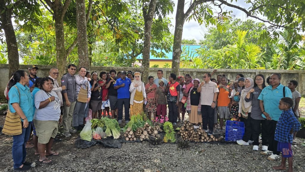 Selanjutnya, tim diajak untuk melihat langsung kegiatan kios pangan keliling yang diselenggarakan di kompleks perumahan BTN Kamoro, Distrik Wania.