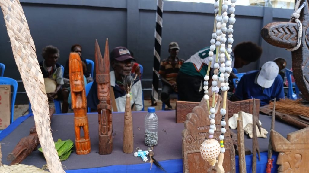 Seperti hari-hari sebelumnya, selain menampilkan tarian dan musik, pentas seni budaya dan kreasi ini juga menyuguhkan ukiran-ukiran khas Suku Kamoro.
