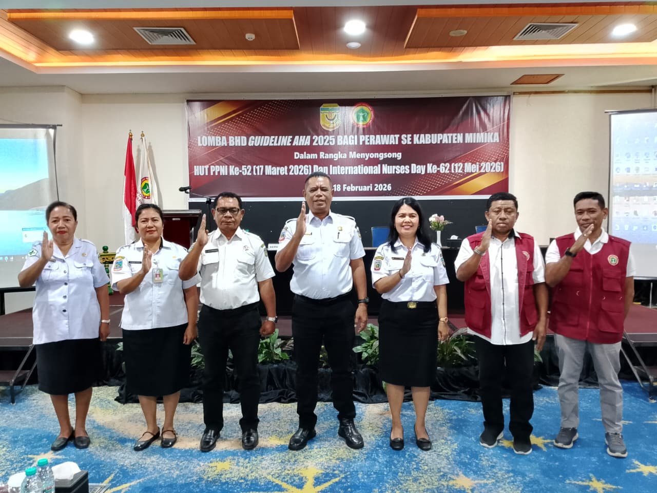 Guna meningkatkan kompetensi perawat dalam melakukan layanan publik, Pemerintah Kabupaten Mimika menggelar Lomba Bantuan Hidup Dasar (BHD) GUIDELINE AHA tahun 2025 bagi Perawat se-Kabupaten Mimika dalam rangka menyongsong HUT Persatuan Perawat Nasional Indonesia (PPNI) ke-52 dan Internasional Nurses Day ke-62 di hotel Horison Ultima, Rabu (18/2/2026).