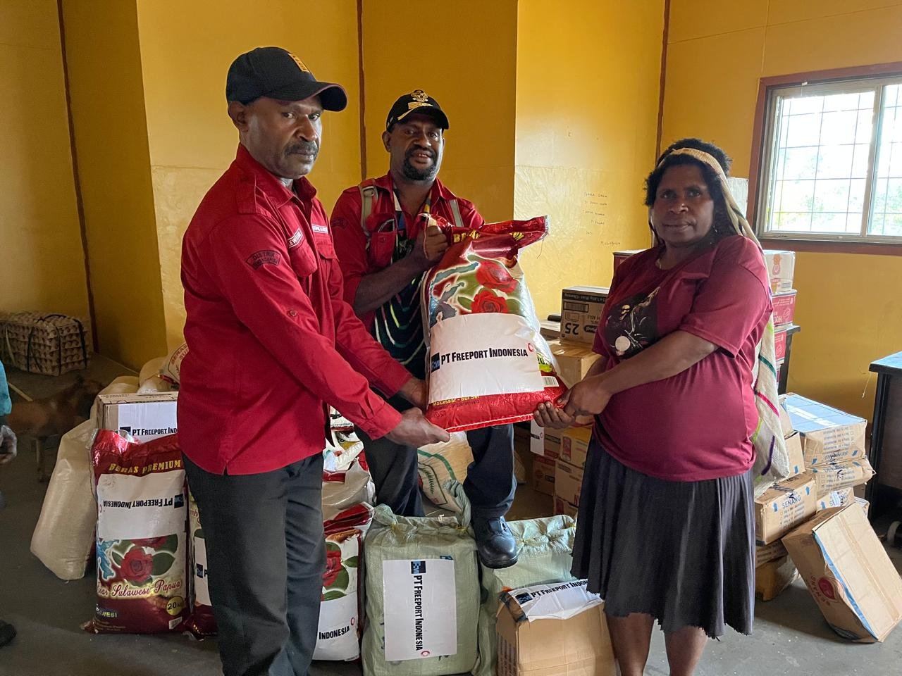 “Hari ini bantuan bahan makanan telah kami terima dari perusahaan Freeport. Terimakasih dari kami warga 6 kampung,” ungkapnya.