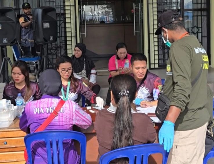 Dalam rangka menyambut HUT RI ke-80, Distrik Mimika Baru menggandeng Puskesmas Pasar Sentral menggelar pemeriksaan kesehatan gratis bagi warga.